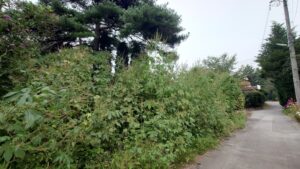 全国一律の年次推移グラフは限定的ですが、河川域や空き地での外来草本の繁茂・拡大は公的資料で繰り返し報告されています。長野県内の千曲川流域でも、外来植物(オオブタクサ等)が繁茂する事例や、確認河川数の増加が示されています。また、当院裏手でも年々オオブタクサの成育が良くなっている印象があります(写真参照)。